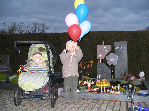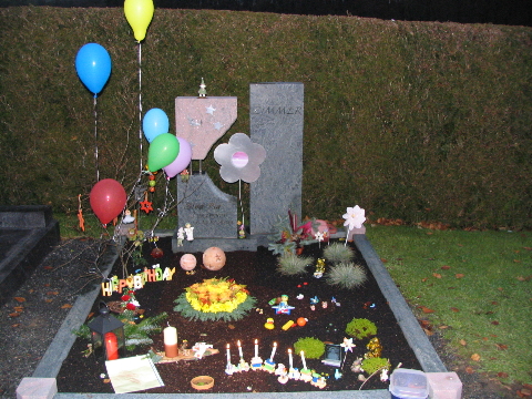 Wir hatten unsere Familie allen eine Karte von Sina gegeben, worauf sie eine Nachricht für Sinchen schreiben konnten. Am Mittag trafen wir uns dann auf dem Friedhof und wir wunderten uns echt es waren 16 Personen da und wir ließen gemeinsam die Luftballons steigen. Auch die Glückwünsche aus dem Internet haben wir ausgedruckt - auch diese sind zum Himmel für Sina gestiegen. Wir standen ganz lange auf dem Friedhof bis kein Luftballon mehr zu sehen war.